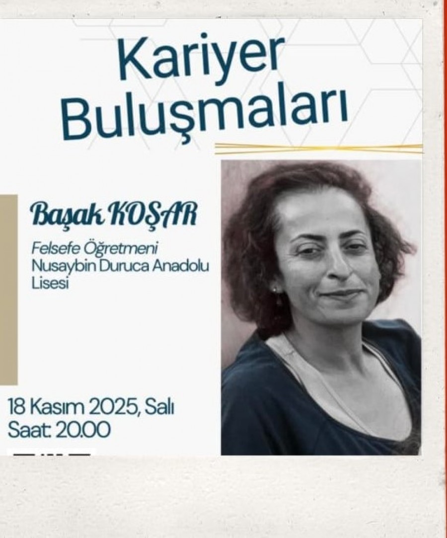 2025-2026 Güz Dönemi "Kariyer Planlama" dersi kapsamında, öğrencilerin kariyer yolculuklarına ışık tutmak amacıyla "Kariyer Buluşmaları" etkinlik serisi düzenlemiştir. Çevrimiçi (online) olarak gerçekleştirilen seminerlerin üçüncüsünde; Nusaybin Duruca Anadolu Lisesi Felsefe öğretmeni Başak Koşar 18 Kasım 2025 Salı günü saat: 20:00'de öğrencilerle buluşmuştur.